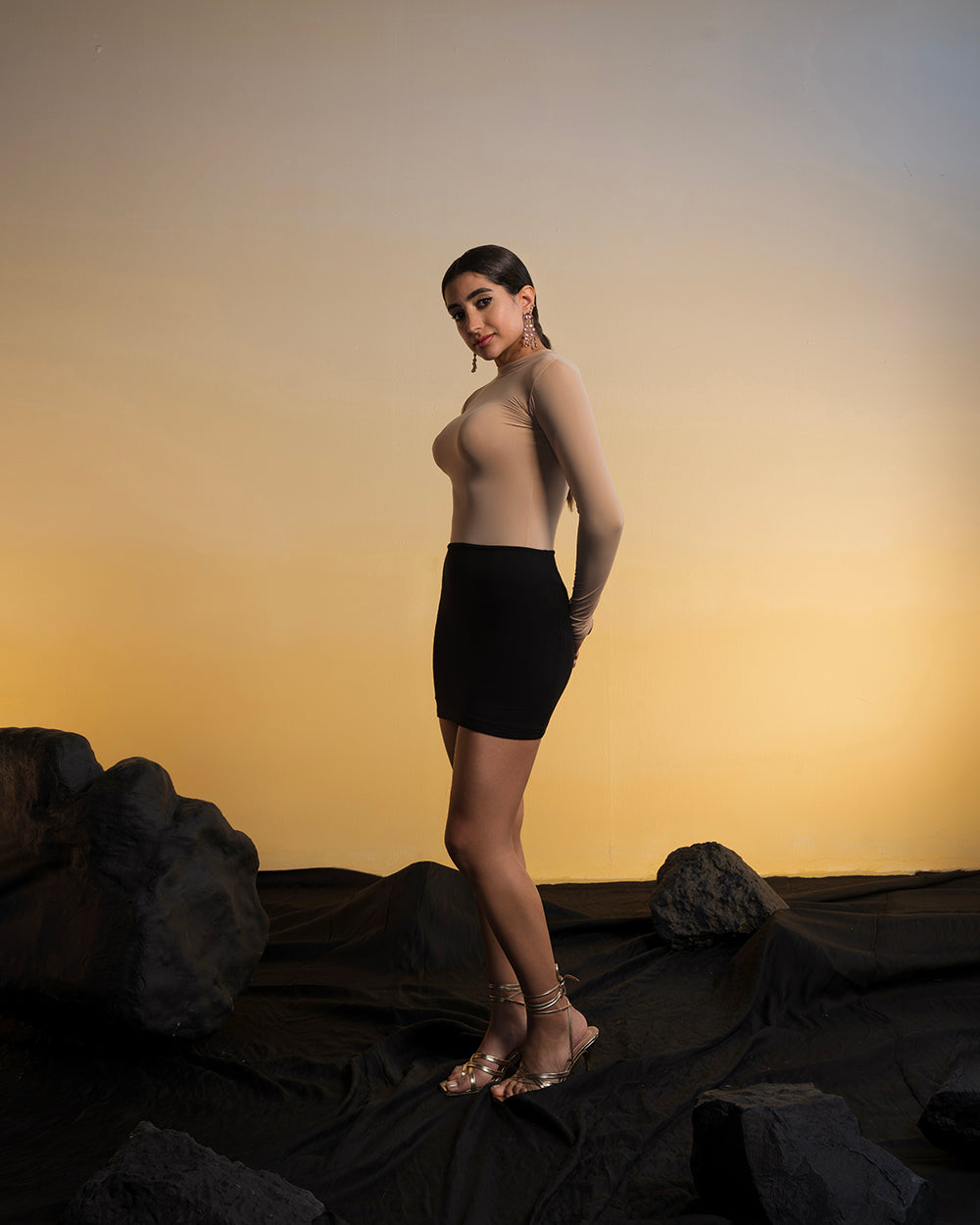 The black dress fits like a glove , the fabric and its elasticity so perfectly accentuates your figure and brings out the best in you .Feels so elegant and perfect .. extremely flattering .. Great confidence booster piece .. kudos ohsofly 😘😘